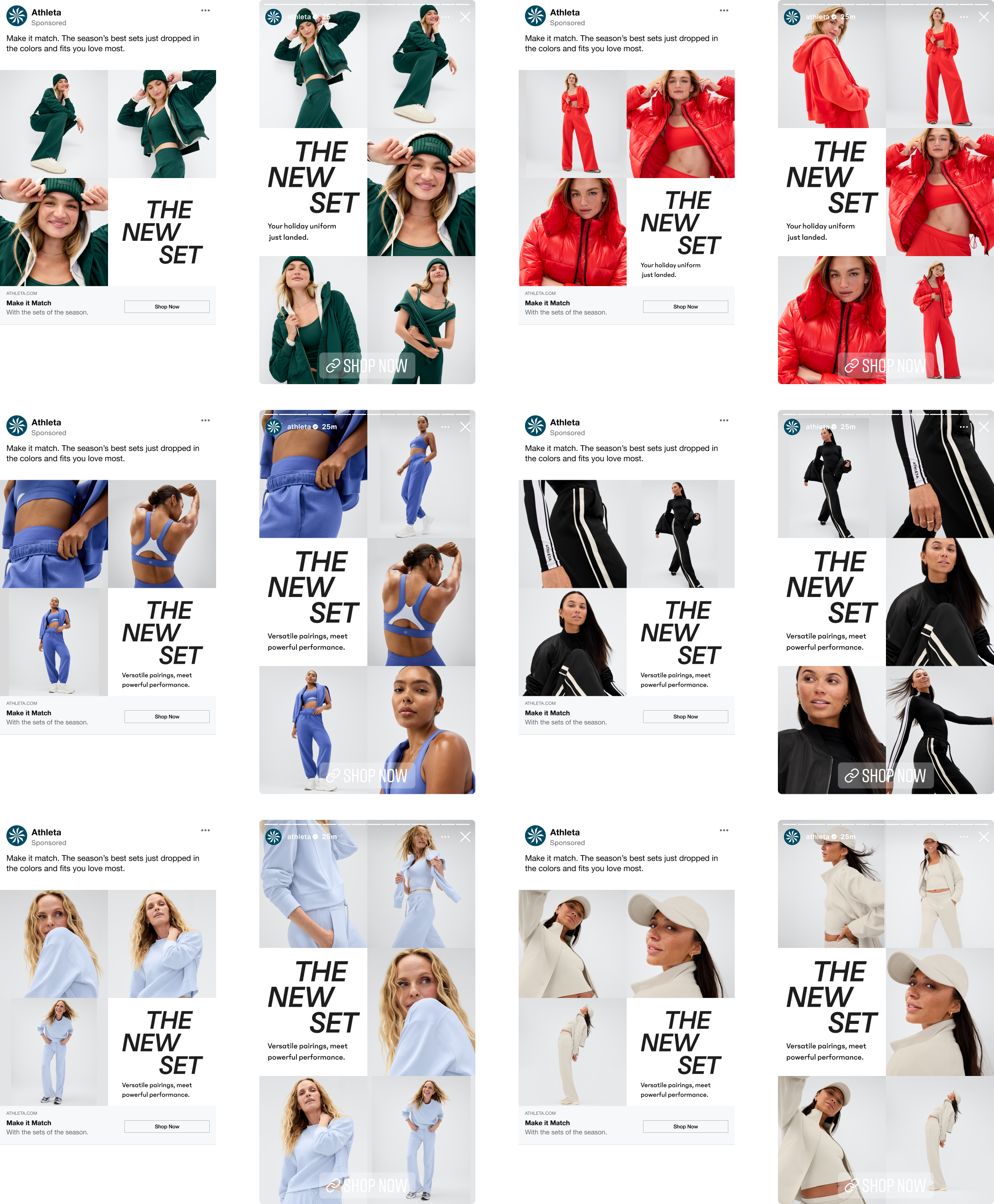 The New Sets redefined how Athleta shows up in color—introducing a bold, modern expression of monochromatic dressing designed to move with her from morning to night. Anchored in the power of head-to-toe saturation, the campaign elevated coordinated sets beyond performance—positioning them as a complete style system that seamlessly bridges training, lifestyle, and rest.